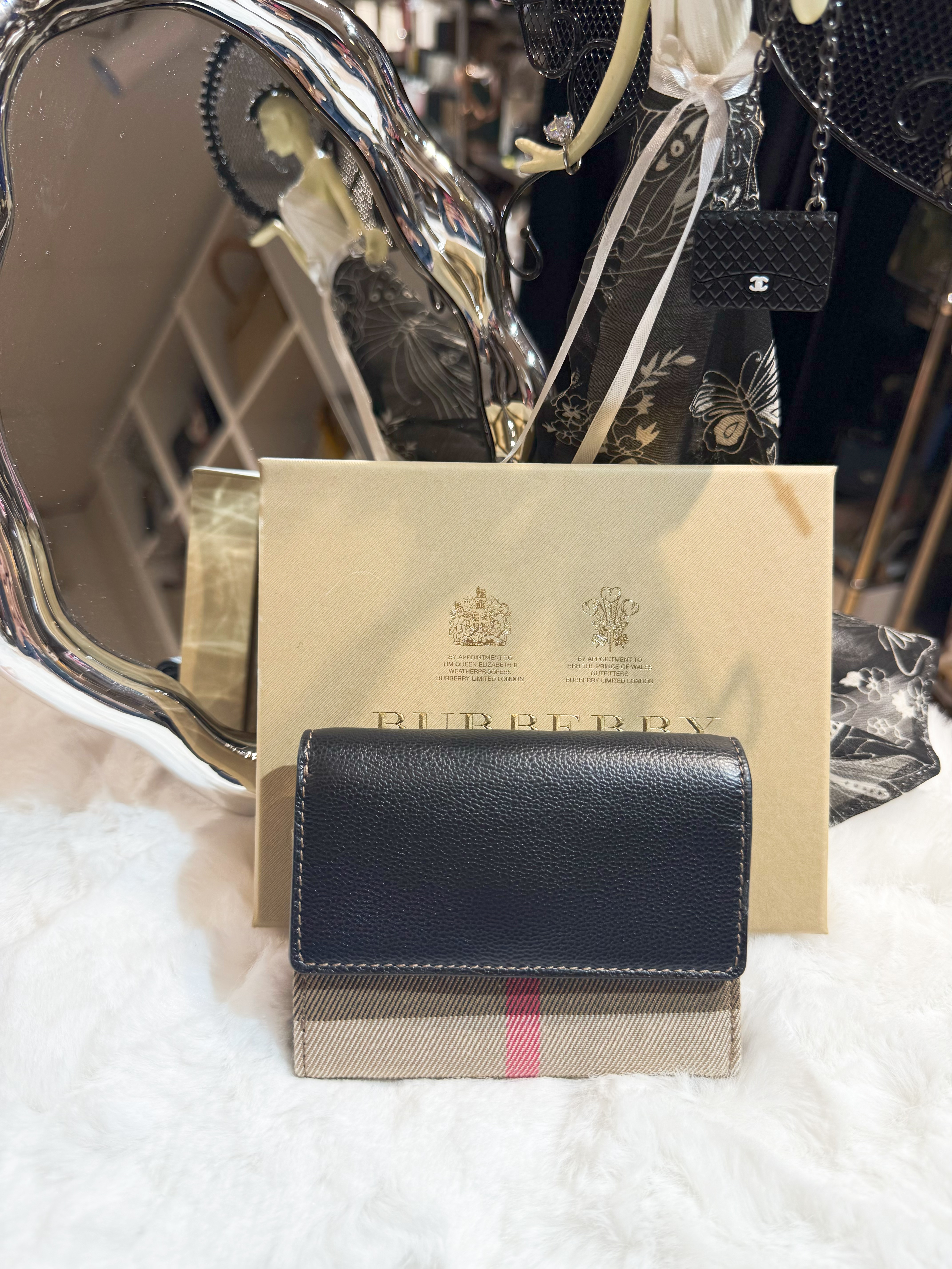 Burberry medium flap wallet canvas/blk