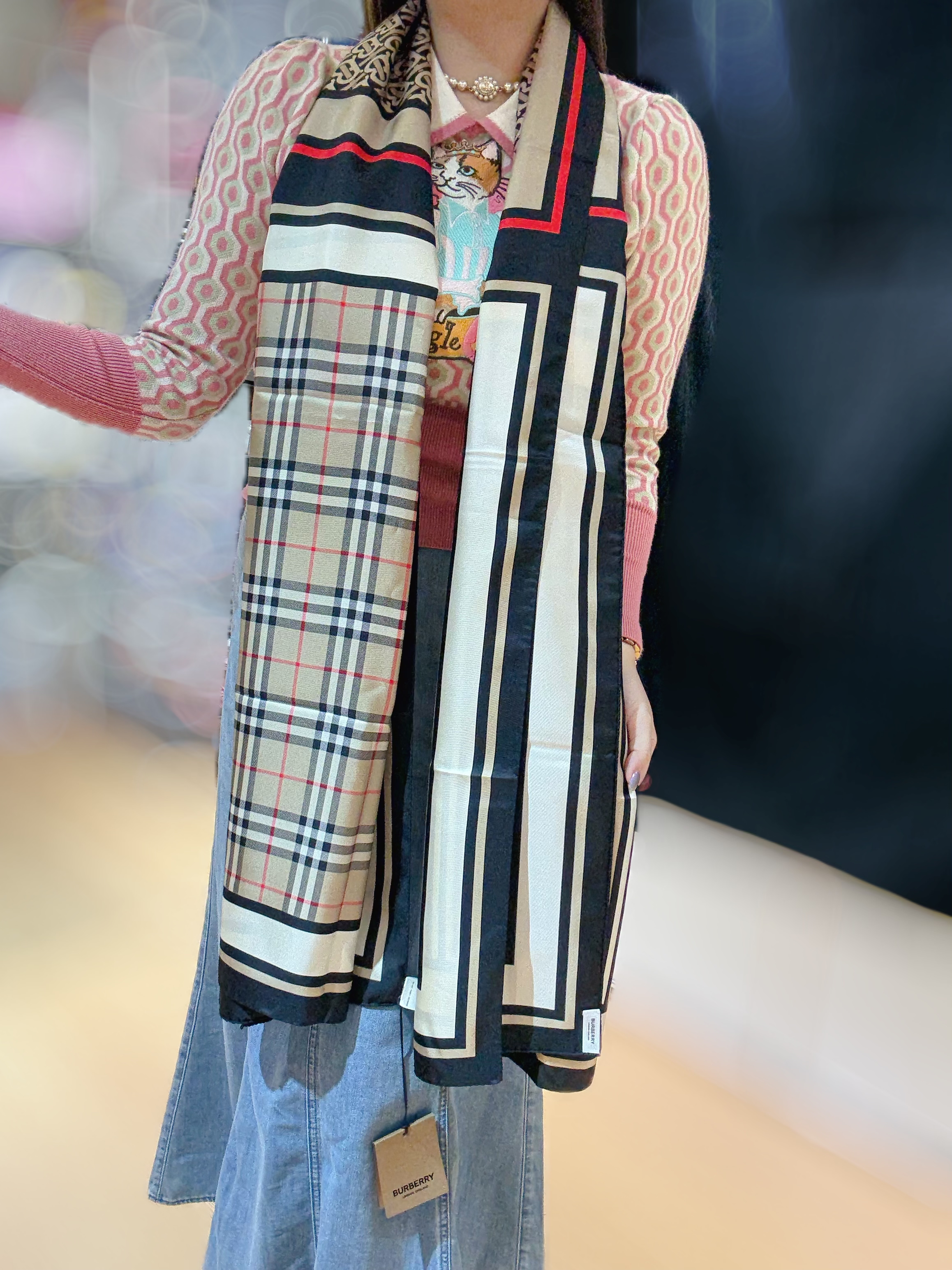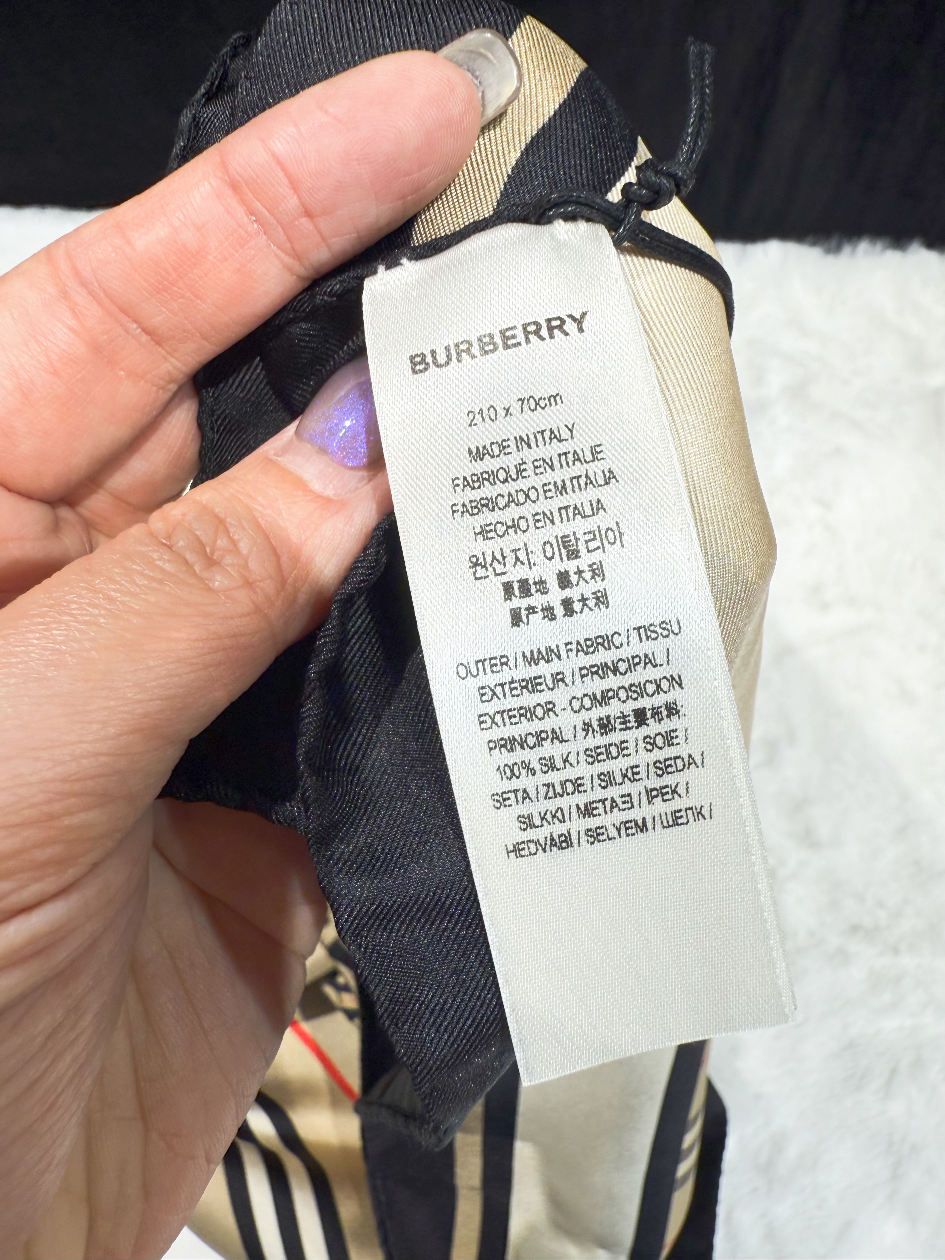 Burberry scarf 🧣 ‼️100% Silk‼️ 210x70cm 門市現貨💕 $2580 寫明門市現貨既都可以到門市選購🛍 或網上下單更快捷📦 門市地址📍:荃灣南豐中心9樓932室 荃灣地鐵站A出口🅰️ 營業時間:1400-2000 RM 932 9/F Nan Fung Centre Tsuen Wan Hong Kong 網站💌https://qshop.boutir.com/